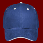 100% Cotton Structured Firm Front Panel Low-Fitting 6-panel cap Seamed Front Panel with Full Buckram 6 Sewn Eyelets; Curved Sandwich Visor 8 Rows Stitching on Visor Matching Fabric Undervisor Adjustable Hook and Loop Closure Size: OSFM -Adult (58cm/22.8")