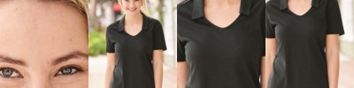 • Contrast color Lycra triple bar-tacked set-in mitered V-neck collar