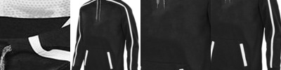 - Self-welt pockets with jersey lined muff pocket
