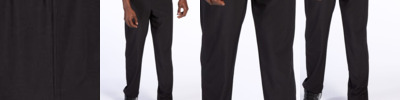 * 100% polyester double knit * 2-way stretch properties allow for increased mobility * Wicks Moisture * Tear away label * Flat front waistband with covered elastic at back * Side seam V-notch