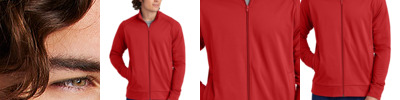 * 100% polyester interlock textured knit with tonal stripe design * Wicks moisture * Tag-free label * Self-fabric collar with collar stay that helps maintain collar shape wash after wash * Box-stitched placket * Three button placket * Set-in sleeves * Side vents