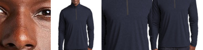 Smooth-faced fleece with a subtle grey print gives this 1/2-zip a sleek performance look. Reverse coil zipper, open cuffs and an open hem. Welded zippered chest pocket, contrast Eddie Bauer heat transfer logo on left sleeve. Made of 7.7-ounce, 95/5 poly/spandex.