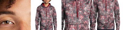 This lightweight hooded pullover locks in color and wicks moisture. Itÿs versatile enough for year-round wear.
