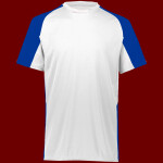 100% polyester wicking knit with color secure(r) technology that helps prevent dye migration * 92% polyester/8% spandex wicking pinhole mesh underarms * Wicks moisture * Girls fit * Tagless label * V-neck collar * Raglan sleeves * Contoured bottom