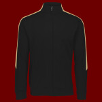 Heavyweight 100% polyester matte brushed tricot * Heat sealed label * Front zipper * Contrast color inserts * Set-in sleeves * Front pockets * Self-fabric cuffs * Open bottom